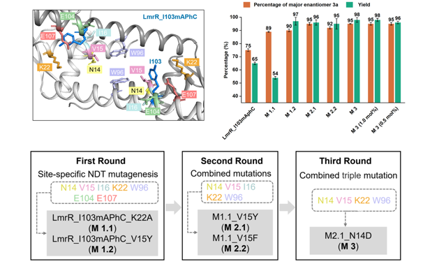 近日,江南大学周志教授课题组在化学期刊Organic Letters上发表了题为“Enzymatic Enantioselective Protonation Regulated by an Artiffcial Enzyme Harboring an In Situ-Biosynthesized S‑(3-Aminophenyl)-cysteine”的研究论文。该研究通过引入原位生物合成非天然氨基酸成功构建一类新型人工酶,该酶可高效催化一例非天然的傅克烷基化-不对称质子化反应...