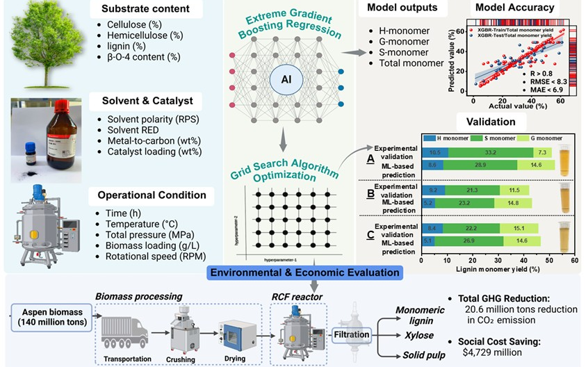 近期,我校生物工程学院生物资源与生物炼制研究团队近期,我校生物工程学院生物资源与生物炼制研究团队Sam课题组在机器学习驱动木质素高效增值转化方面取得重要进展,研究成果“Scalable lignin monomer production via machine learning guided reductive catalytic fractionation of lignocellulose”正式发表于Advanced Science 。木质纤维生物质是自然界中最丰富的可再生...
