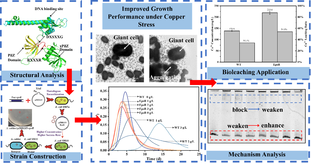 近日,我校生物工程学院冯守帅教授课题组在极端微生物资源挖掘与工业生物技术应用领域取得重要进展。研究成果“Transcriptional regulatory factor EpsR mediates adaptation mechanism of extremophile Acidithiobacillus caldus to copper stress environment and performance in bioleaching of low-grade copper...