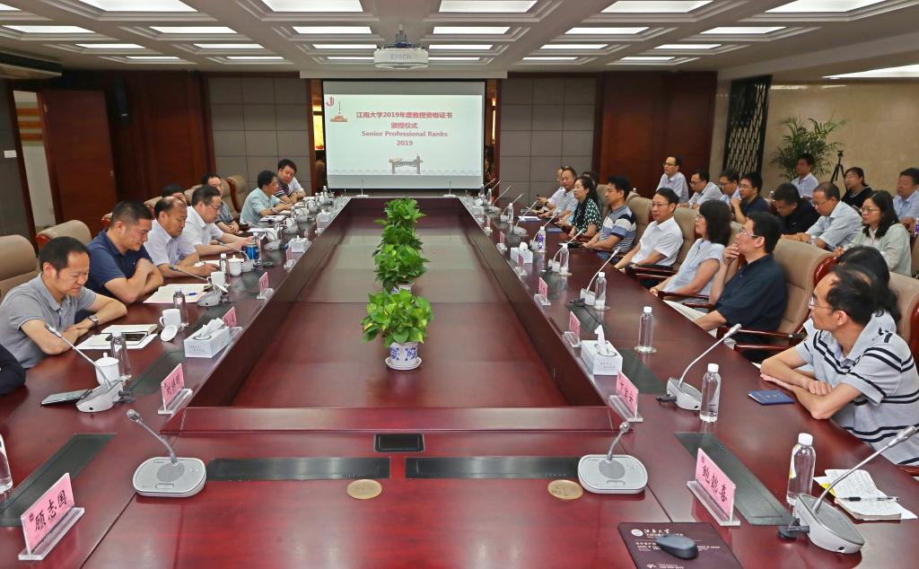 6月28日上午,江南大学2019年度教授证书颁授仪式在行政楼B305会议室隆重举行。校党委书记朱庆葆、校长陈坚以及组织部、党委教师工作部、人事处、教务处、研究生院、科研院、产研院、社科处等职能部门负责人和全体新晋教授出席。颁授仪式由副校长顾正彪主持。陈坚为2019年度新晋教授一一颁授证书并合影留念。并围绕“责任、担当、追求”对新晋教授发展提出殷切希望。他指出,成为“教授”,在责任方面需要有更清醒的认识。首先是...