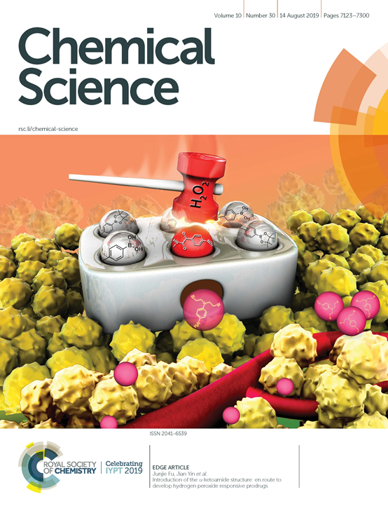 近日,英国皇家化学会(RSC)旗舰期刊Chemical Science(自然指数期刊,化学一区top,IF 9.556)内封面报道了生物工程学院尹健教授团队在新型前药领域的研究成果:Introduction of theα-ketoamide structure: enroute to develop hydrogen peroxide responsive prodrugs (Chem. Sci.,2019,10, 7156. DOI: 10.1039/c9sc00910h)。硕士生孟婷婷和博士生张朋飞分别为第一、第二作者,尹健教授和傅俊杰副教授为共同通讯作者。过氧化...