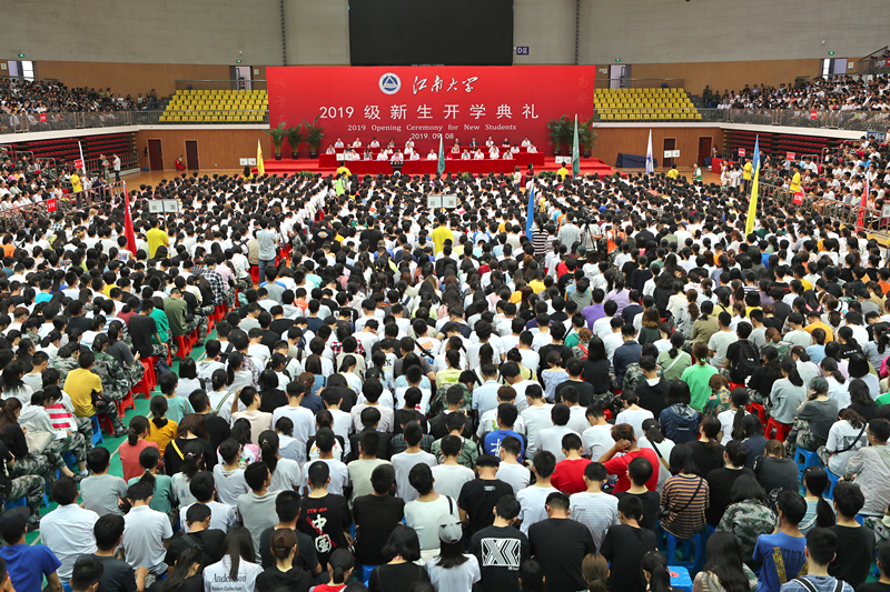 云天收夏色,八方俊彦聚江南;木叶动秋声,莘莘学子再起航。9月8日上午,伴随着雄壮的国歌,江南大学2019级本科和研究生新生开学典礼在校体育馆隆重举行。校党委书记朱庆葆,校长陈坚,校党委副书记戴月波,副校长徐岩、田备、顾正彪、陈卫、张凌浩,校党委常委张影陆、朱飞,校长助理堵国成,各学院院长,相关职能部门领导,师生代表和家长代表出席了典礼。本科新生开学典礼由戴月波主持。值新中国成立70周年之际,全校师生...