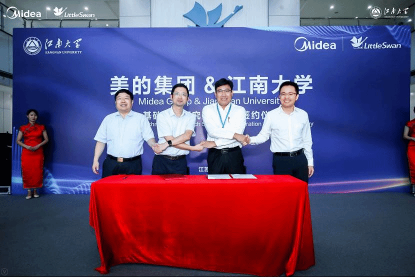 9月12日下午,美的集团洗衣机事业部与江南大学举行科研战略合作协议签约仪式,暨美的集团洗衣机事业部与江南大学联合成立三大研究中心揭牌仪式在无锡小天鹅股份有限公司举行。美的集团洗衣机事业部总裁陆剑峰、研发中心主任徐彭城等代表,中国工程院院士、江南大学校长陈坚,副校长张凌浩与设计学院、纺织服装学院、物联网工程学院等代表及项目团队出席了签约仪式。签约仪式上,张凌浩与徐彭城签署战略合作协议,陈坚与陆剑峰共...