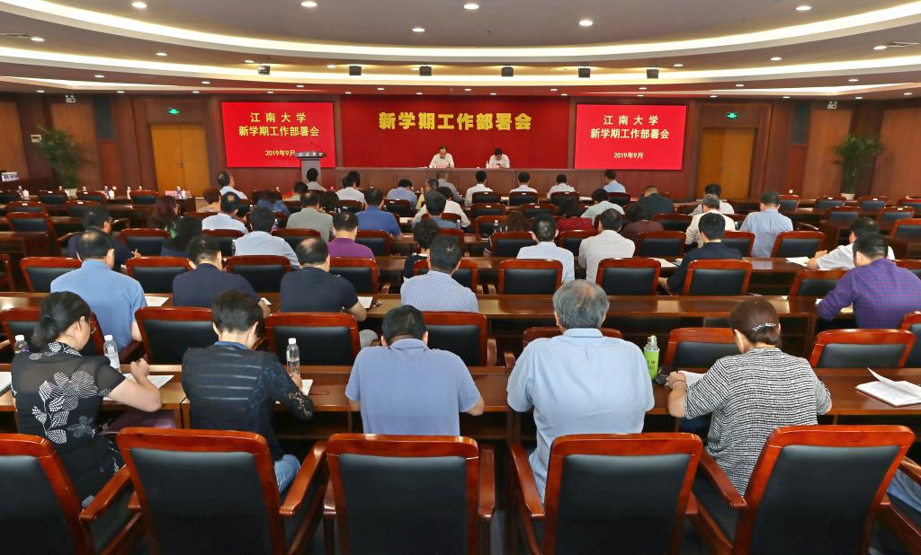 9月25日,江南大学新学期工作部署会在图书馆五楼报告厅召开。全体校领导、党委常委、校长助理,各学院党委书记、院长(含主持工作),机关职能部门、直属单位主要负责同志(含主持工作)参加了会议。校党委书记朱庆葆主持会议。会议开始前,简朴而隆重地举行了“庆祝中华人民共和国成立70周年纪念章”颁发仪式。作为新中国成立70周年系列庆祝活动的重要组成部分,该纪念章是根据中央安排以中共中央、国务院、中央军委名义颁发...