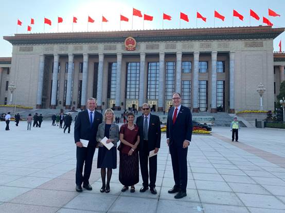 受中华人民共和国政府邀请,我校五位外国专家,爱尔兰皇家科学院院士、考克大学Paul Ross教授夫妇,新加坡工程院院士、加拿大麦吉尔大学Arun S. Mumjumdar教授,英国皇家工程院院士、萨里大学Joseph Kittler教授及德国马克斯-普朗克研究所所长Peter Seeberger教授,赴北京参加中华人民共和国成立70周年庆祝活动。9月27日晚,庆祝中华人民共和国成立70周年外国专家招待会在人民大会堂隆重举行,中共中央政治局常委、国务院副总...