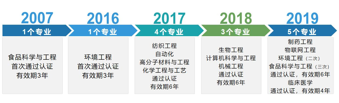 近日,中国工程教育专业认证协会公布了2021年受理工程教育专业认证申请的名单,我校食品质量与安全、微电子科学与工程、包装工程、过程装备与控制和数字媒体技术等5个专业的申请获批受理。另外,根据长三角新文科教育专业认证联盟通知,我校产品设计、汉语言文学、工商管理等3个专业获批受理2021年新文科教育认证申请。参与专业认证是推进教育教育改革、提高人才培养质量的重要举措,也是一流本科专业建设“双万计划”的重要指...
