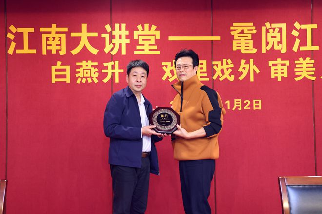 11月2日下午,著名节目主持人、戏曲策划人白燕升教授做客我校“江南大讲堂”“鼋阅江南讲座”,向江南师生讲述《戏里戏外 审美人生》。讲座由图书馆与档案馆党总支书记曹瑛主持。校党委常委、宣传部部长倪松涛为白燕升颁授了江南大讲堂讲座教授纪念牌。讲座伊始,白燕升自述了与无锡的缘分和对大学校园的情结,并以自己制作的《擂响中华》节目中的视频引出“审美的核心是艺术”这一观点。他结合自身求学与工作经历,生动阐释了...