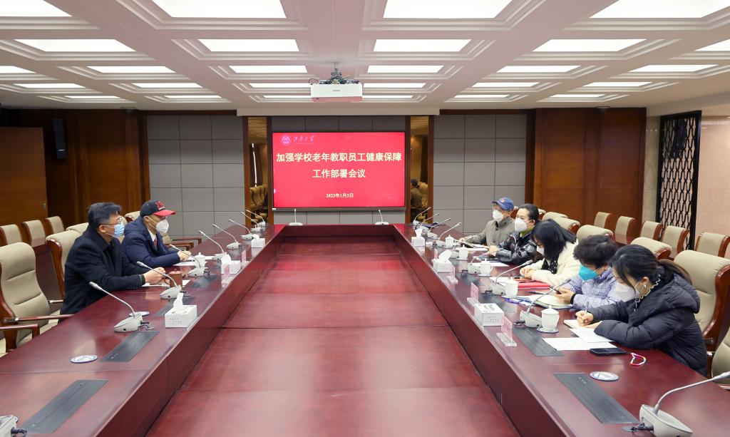 1月3日,学校加强老年教职员工健康保障工作专题会议在行政楼B305会议室召开。校党委副书记符惠明,校长办公室、后勤保障系统党委、离退休工作处、人力资源处等有关部门负责人参加会议,会议由党委常委、党委办公室主任朱飞主持。朱飞传达了近期教育部、江苏省关于做好老年教职员工健康保障工作的有关通知精神以及学校党委常委会、干部教师大会的相关部署要求。离退休工作处、人力资源处汇报了学校近期关心老年教职工健康保障工...
