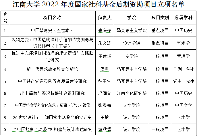 2月6日,全国哲学社会科学工作办公室公布了2022年度国家社科基金后期资助暨优秀博士论文出版项目立项名单,我校共获批立项9项。其中,重点项目2项,一般项目7项,这是我校首次同时获批2项重点项目,立项数再创佳绩,位列全国高校并列第22位,江苏高校并列第5位,立项率33.33%。国家社科基金后期资助暨优秀博士论文出版项目是国家社科基金项目的主要类别之一,旨在鼓励广大哲学社会科学工作者弘扬优良学风,潜心治学,扎实研究,...