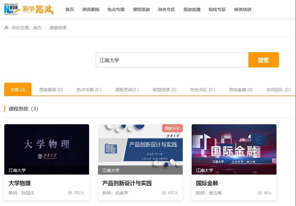 近日,我校《产品创新设计与实践》《国际金融》《大学物理》等3门课程上线新华网“新华思政——全国高校课程思政教学资源服务”平台,全面开放共享教学设计、教学视频、教学说课、教学课件等教学资源,标志着我校课程思政建设工作取得新的进展。“新华思政”教学资源服务平台依托新华网建设,旨在通过对全国高校课程思政案例课的展示,推动课程思政优质建设资源大范围共享,推广课程思政的先进经验和做法,助力高校有效地开展课...