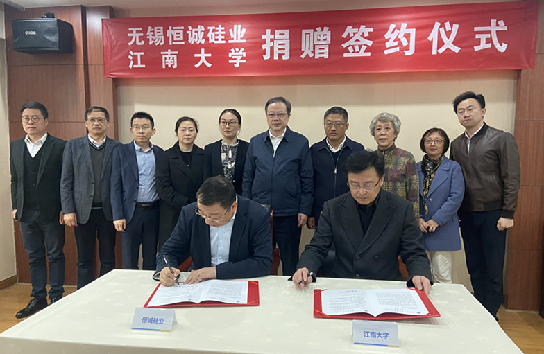 4月6日,无锡恒诚硅业-江南大学捐赠签约仪式在无锡恒诚硅业有限公司举行。无锡恒诚硅业董事长陈南飞,总经理陈辰,销售经理郑敏敏,江南大学党委书记朱庆葆,中国工程院院士、校长陈卫,党委副书记符惠明,原副校长王武以及党委办公室、校长办公室、社会合作与校友联络处等部门和商学院唐建荣教授,食品学院孙震教授参加了签约仪式。仪式由校长办公室主任黄敏主持。符惠明与陈南飞共同签署了捐赠协议。陈南飞慷慨捐赠壹仟万元,...