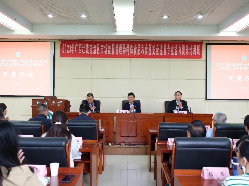 4月11日上午,2023年广西特殊食品和食盐安全监管专业能力提升培训班开班典礼在文浩馆313报告厅举行开班仪式。广西壮族自治区市场监督管理局党组成员、副局长黄震,校党委常委、副校长吴正国出席开班仪式。开班仪式由继续教育学院院长王育红主持。本次培训班旨在贯彻落实党的二十大精神,深入学习习近平新时代中国特色社会主义思想,落实食品安全“两个责任”要求,学习特殊食品和食盐监管相关法律法规和监管业务知识,研究特食...