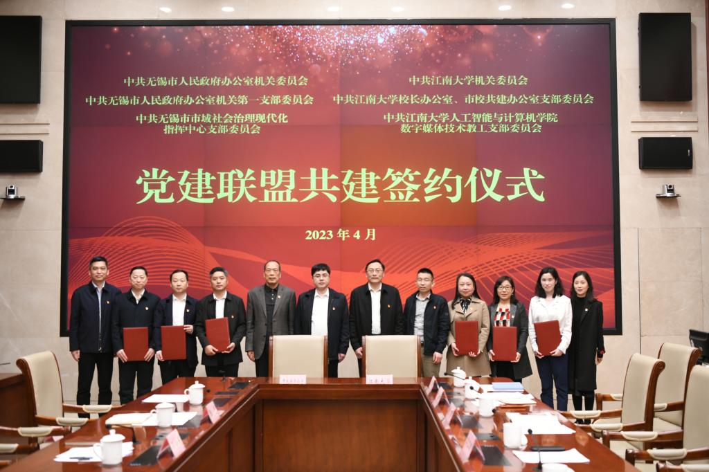 为深入学习贯彻党的二十大精神,以高质量党建推动市校深度交流合作,更好地服务区域经济社会发展,4月10日下午,无锡市政府办机关党委与江南大学机关党委,市政府办公室机关第一党支部与江南大学校长办公室、市校共建办公室党支部,无锡市城市运行管理中心党支部与江南大学人工智能与计算机学院数字媒体技术教工党支部三方举行党建联盟共建签约仪式。无锡市政府办公室、无锡市城市运行管理中心、江南大学机关党委、校长办公室、...