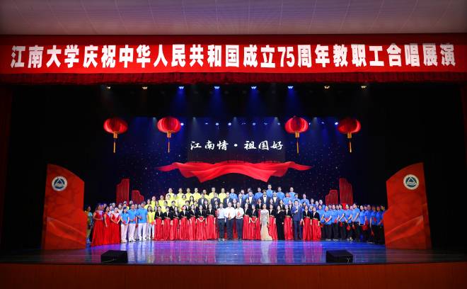 为庆祝中华人民共和国成立75周年,大力弘扬爱国主义精神,唱响奋进新时代的主旋律,展现我校教职工的爱国情怀和团结向上的精神风貌,9月25日下午,由校工会、党委宣传部及人文学院联合举办的“江南情,祖国好”——江南大学庆祝中华人民共和国成立75周年合唱展演活动在文浩馆观众厅举行。校党委书记吴正国,校党委副书记戴月波,校党委常委、副校长张影陆、倪松涛,校党委常委、工会主席朱飞等出席活动,各学院、单位近千名教职...