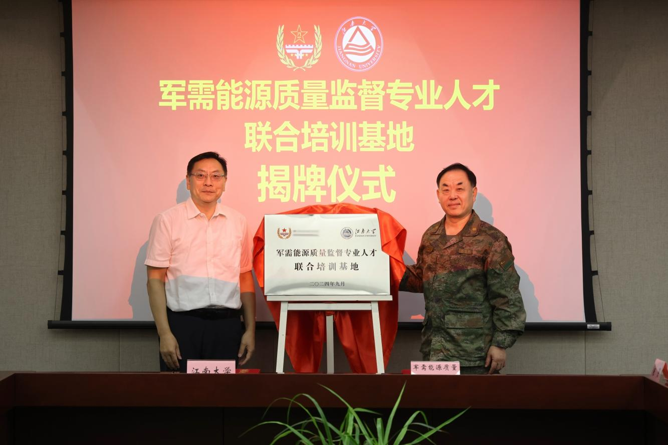 近日,江南大学—联勤保障部队军需能源质量监督专业人才联合培训基地签约暨揭牌仪式在我校举行。联勤保障部队某总站党委书记(军方领导),我校党委书记吴正国、党委办公室主任王维、教务处处长兼本科招生办公室主任李兆丰、食品学院党委书记傅莉莉、纺织科学与工程学院党委书记张菁燕等出席仪式。仪式由傅莉莉主持。吴正国对来宾表示热烈欢迎,并介绍学校在军需质检领域的教学与研究优势,表达对双方合作的热切期望。军方领导...