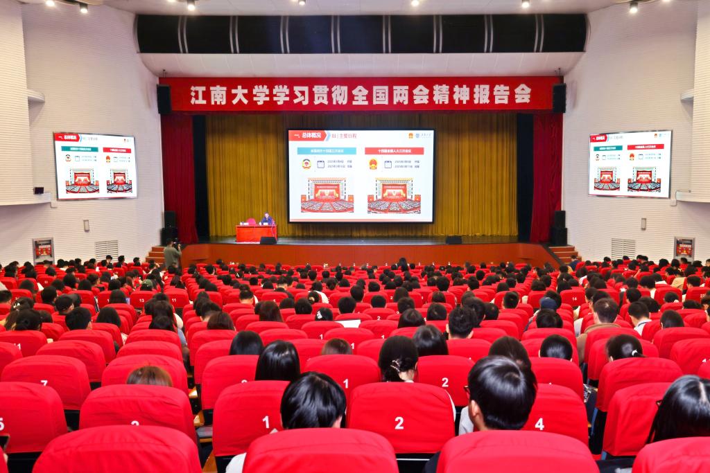 3月24日下午,学校在文浩馆观众厅召开学习贯彻全国两会精神报告会。全国人大代表、校党委副书记、校长陈卫作学习贯彻全国两会精神辅导报告。校院两级党委理论学习中心组成员、校党委委员和纪委委员、各二级党组织师生代表等800余人参加报告会。校党委书记吴正国主持报告会。陈卫全面介绍了今年全国两会召开的基本情况、政府工作报告等的主要内容,介绍了习近平总书记参加江苏代表团审议时的重要讲话精神,阐释了习近平总书记关...