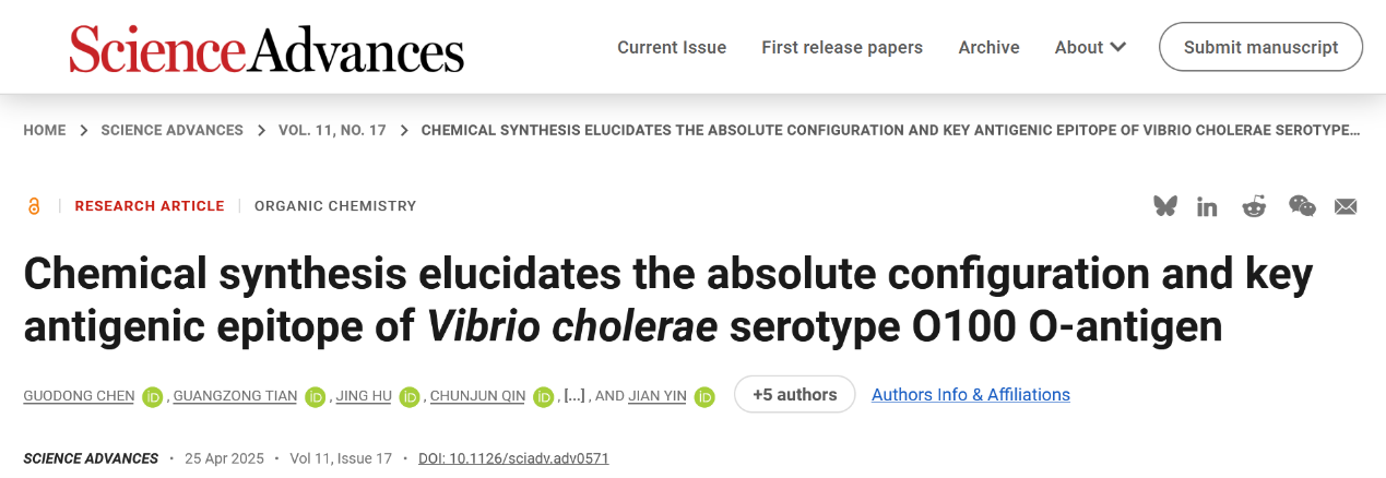 近期,江南大学生物工程学院、糖化学与生物技术教育部重点实验室尹健教授团队在致病菌糖链抗原的全合成及抗原性研究方面取得新进展,研究成果“Chemical Synthesis Elucidates the Absolute Configuration and Key Antigenic Epitope ofVibrio choleraeSerotype O100 O-Antigen”发表于Science Advances(https://doi.org/10.1126/sciadv.adv0571)。霍乱弧菌(Vibrio cholerae)是一种革兰氏阴性致病菌,广泛存在于污染的水源...