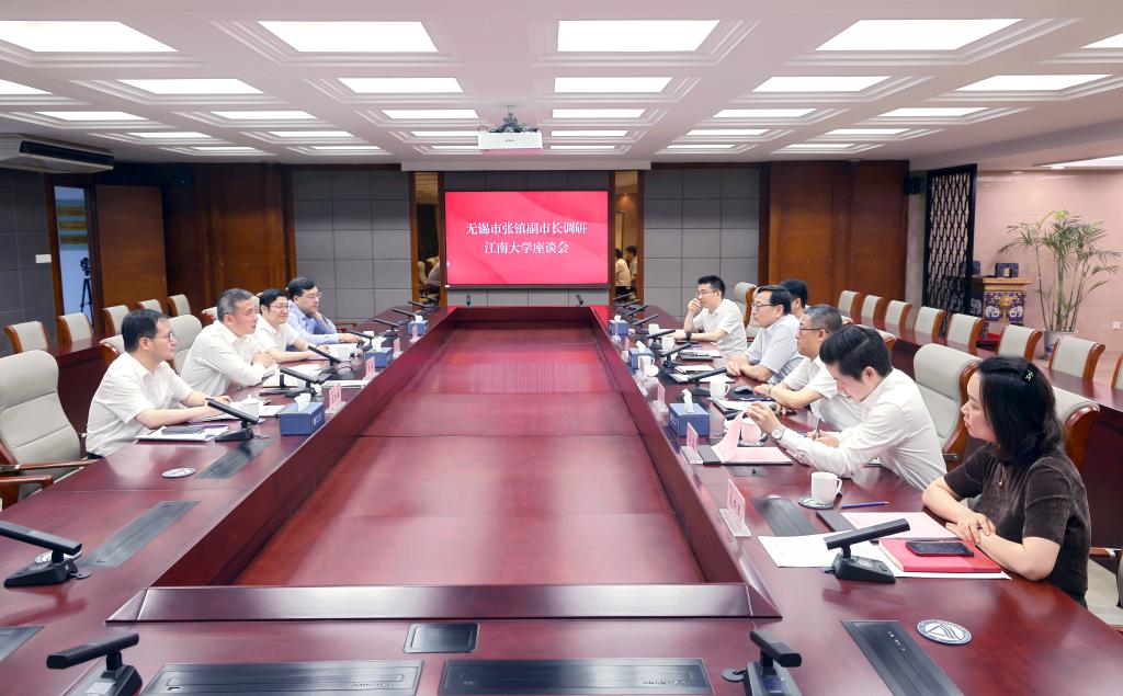 7月2日下午,市校共建年度重点任务工作推进会在江南大学召开。无锡市副市长张镇,副秘书长顾文龙,教育局局长宋新春,卫生健康委主任笪学荣,江南大学党委书记吴正国,校长陈卫,校党委副书记倪松涛,校党委常委、副校长马鑫,校长办公室、市校共建办公室负责人等出席会议。倪松涛主持会议。陈卫对张镇一行的到来表示欢迎,对无锡市长期以来给予江南大学的关心和支持表示感谢,他从办学规模、校区建设、学科建设等方面详细介绍...