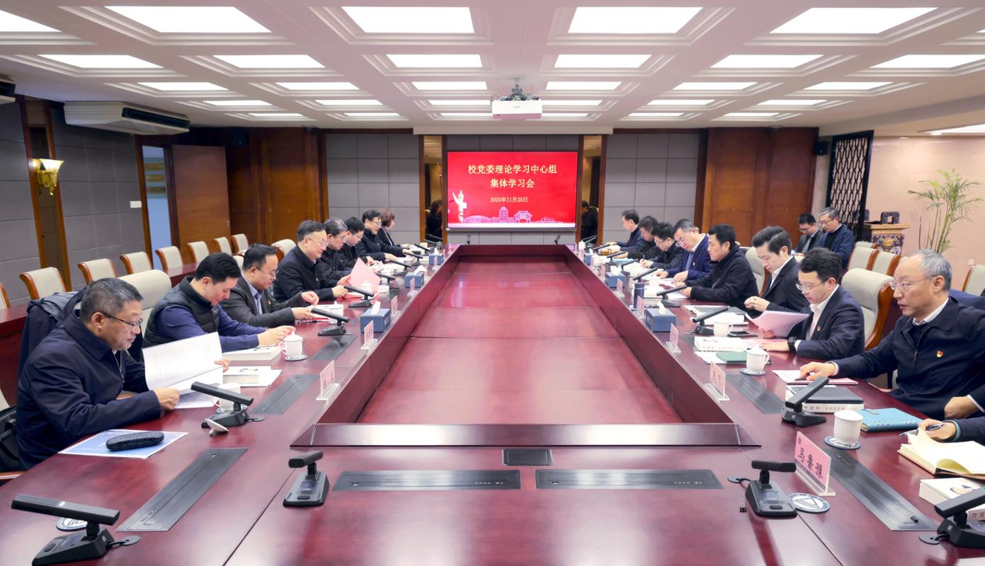 11月25日下午,校党委理论学习中心组在行政楼B305会议室召开集体学习会,聚焦《习近平谈治国理政》第五卷开展专题学习研讨。校党委书记吴正国主持会议,省教育厅副厅长杨树兵、省教育厅高教处处长徐庆、省教育厅高教处副处长毛晓翔、南京医科大学党委宣传部副部长赵春华、省教育厅高教处三级主任科员王伟列席指导。吴正国逐章领学了《习近平谈治国理政》第五卷的理论精髓。他指出,《习近平谈治国理政》第五卷生动记录了党的二十大以来习近平总书记带领党和人民继续进行伟大斗争、建设伟大工程、推进伟大事业、...