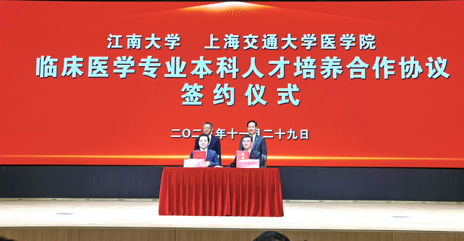 11月29日,我校与上海交通大学医学院临床医学人才培养合作签约仪式在上海举行。上海交通大学副校长、医学院院长、中国工程院院士范先群,江南大学校长、中国工程院院士陈卫出席签约仪式。江南大学党委常委、副校长、无锡医学院院长马鑫与上海交通大学医学院党委副书记、副院长吴正一签署合作协议。无锡医学院党委书记向琪、执行院长孙宁及学院领导班子等相关同志陪同参加。签约仪式由上海交通大学医学院副院长毕宇芳主持。签约仪式后,陈卫应邀出席上海交通大学与上海第二医科大学“强强合并”20周年系列活动,上...