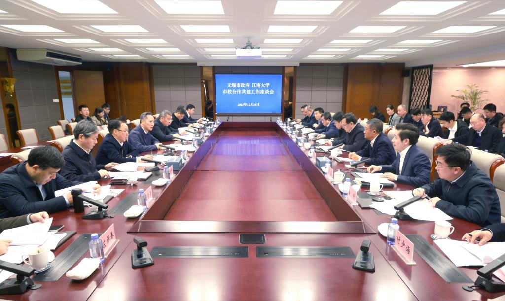 12月29日,无锡市政府与江南大学市校合作共建座谈会在江南大学召开。无锡市市长蒋锋与学校党委书记吴正国、校长陈卫共商合作、共话发展。无锡市副市长张镇,市政府秘书长陈寿彬;校党委副书记倪松涛,副校长马鑫、刘龙、金科出席会议。吴正国对长期以来关心支持江南大学建设发展的无锡市委、市政府表示感谢。他指出,“十四五”时期市校双方始终坚持“名城名校、彼此赋能”的合作共识,学校紧扣“教育强国,江南何为”和“服务无锡,江南何为”时代命题,积极为无锡在中国式现代化新实践中“走在前、做示范”贡献力...