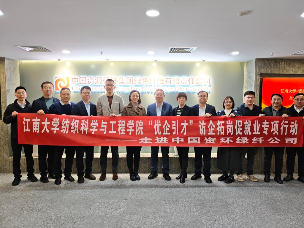 3月24日下午,学校党委常委、副校长张影陆带队赴中国资源循环集团绿色纤维有限责任公司对接交流并开展“优企引才”访企拓岗活动。江南大学纺织科学与工程学院党委书记张菁燕、院长马丕波,党委副书记兼副院长王恒,副院长张丽平、刘庆生等参加活动。中国资环绿纤公司党委书记、董事长陈世杰,党委组织部副部长郭远帆,市场开发部总经理孙玉成等出席活动。会议由中国资环绿纤公司科技创新与数智化部副总经理年春桥主持。会上,年春桥介绍了中国资环绿纤公司成立的背景、核心业务与技术需求等情况。马丕波介绍了江南大...